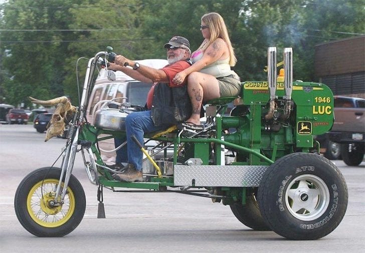 Ils ont une préférence pour les tracteurs modifiés avec des allures de dragsters. Harley-Davidson aurait sûrement produit un véhicule comme sur cette photo si on lui avait demandé de fabriquer des tracteurs. Il reste à voir si ce véhicule se débrouille sur les champs ou les chemins de terre.