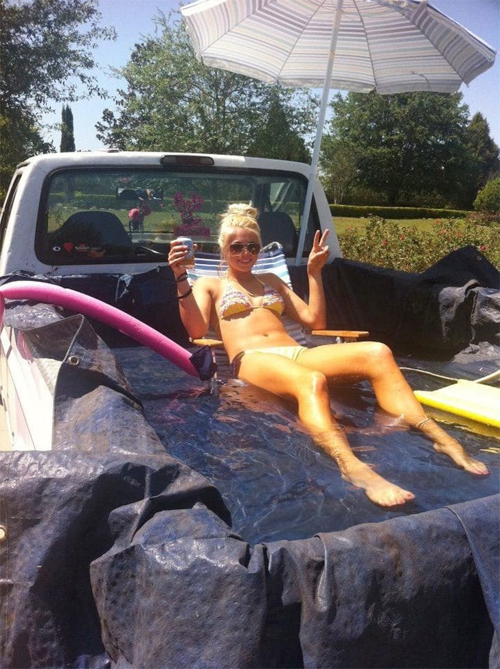 Qui a besoin d’une piscine quand on a un camion ? L’avantage de vivre dans le Sud, c’est que l’on peut profiter du soleil à tout moment et n’importe où. C’est exactement ce que cette jeune femme de la campagne a décidé de faire en utilisant l’arrière de son camion comme une piscine hors sol.