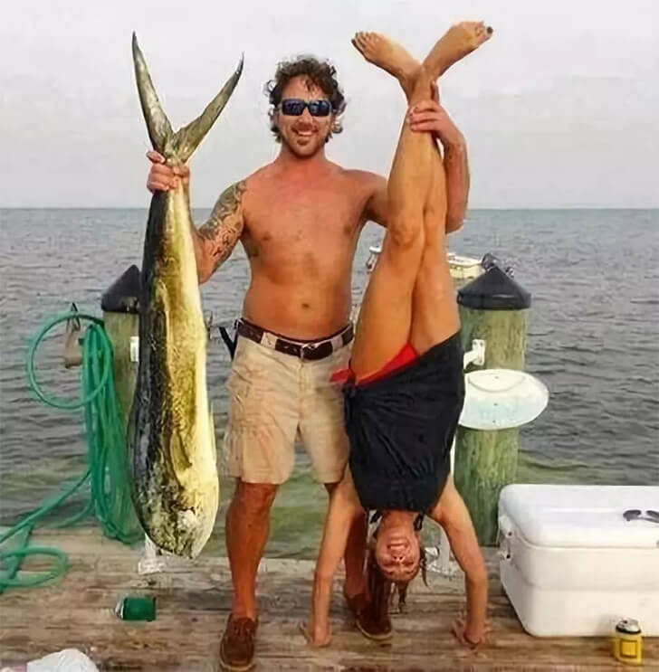 Fishing is a fun and fulfilling activity. Who wouldn’t want to enjoy a large fish barbecue under the sun’s heat, right? These two people don’t just have the opportunity to share the fish; they also share a sense of humor. This photo even trended online, and many have been doing the same: a fish on the other hand and a person on the other.