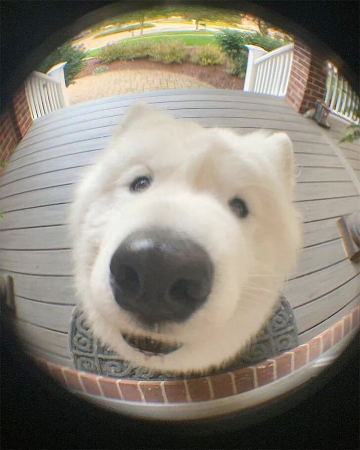 After all, how many people would believe you if you told them that a dog rang your doorbell and stared through the peephole until you opened it? He could’ve been lost while playing outside and needed help finding his way back, he could’ve been trick or treating, or he could’ve visited for some petting. The possibilities brought by this picture are endless.