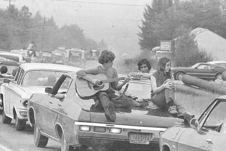 Being stuck wasn’t all that boring for these youngsters who, with the company of an acoustic guitar, were having a jam session of their own on top of the car’s trunk. That’s how you know Woodstock was special; even the people who were left out were able to appreciate the spirit of the times and have a great time!