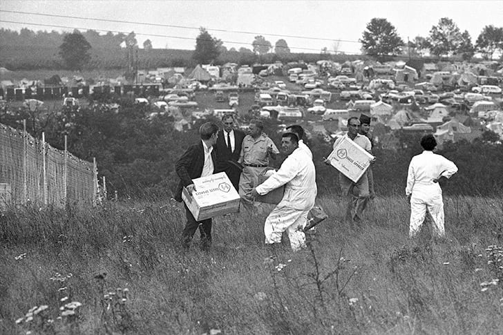 In this picture, Woodstock doctors carry boxes with medical supplies that were delivered by helicopter. The resolute assistance of people like the ones you see above was crucial in ensuring a safe environment for all the festival-goers. These were the unsung heroes of the Woodstock Festival!