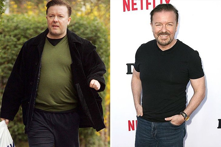 Ricky Gervais – 40lbs – Healthy Eating Regimen & Gym Workouts