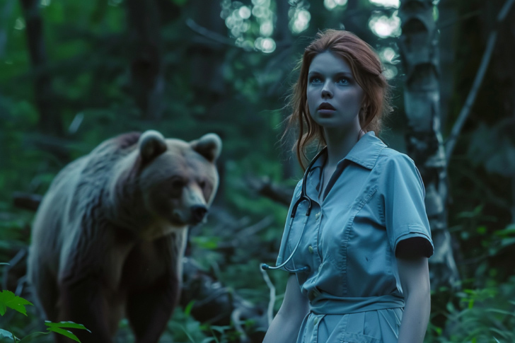 The deeper Hana followed the bear into the woods, the more unsettling things became. Strange sounds bounced between the trees, making the shadows feel alive. Every step brought a chill, and for a moment, she considered going back. That’s when her phone buzzed. The vet’s voice came through, distorted and choppy, but it was clear enough he wanted her to stop.