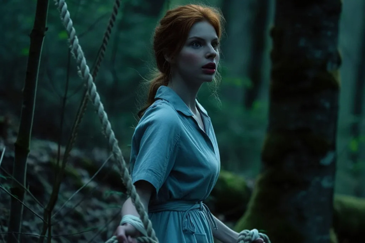Her heart pounded as she called down, promising to get him and the creatures out. Fear bubbled under her ribs, but determination rose stronger. Scanning the area, her eyes caught a large, sturdy tree. A flicker of hope returned. It was close enough to anchor the rope. The pieces of a plan were there. Now, all that mattered was pulling it off.