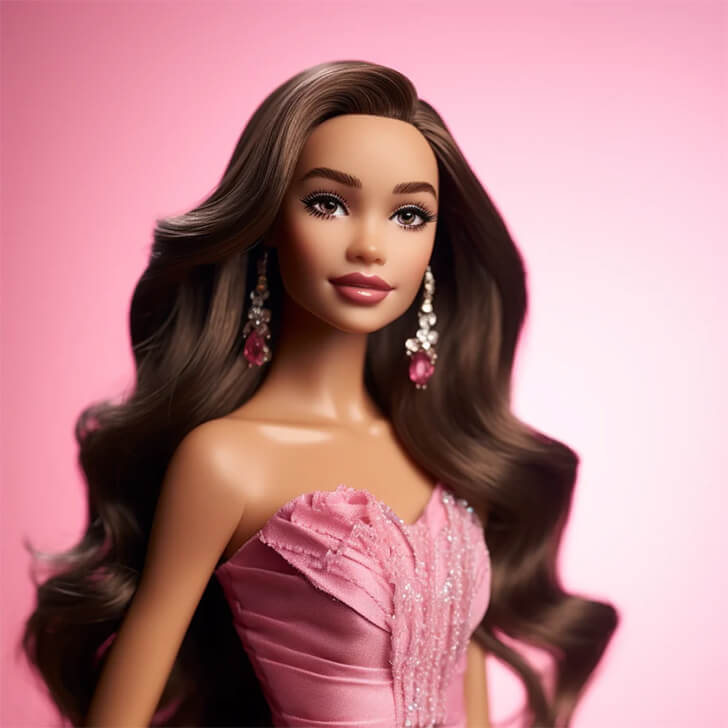 Artificial intelligence takes center stage here by transforming Olivia Rodrigo into a radiant figurine. The singer-songwriter, who took the world by storm with her debut album “Sour,” is depicted in a pink strapless gown adorned with stone-studded embroidery, highlighting her youthful elegance.