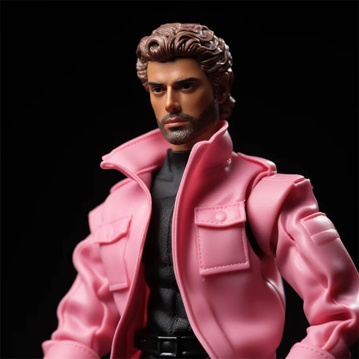 Behold an AI-created image of Oscar Isaac in his most unconventional role yet—as a Barbie doll. The Guatemalan-American actor, famous for his roles in “Star Wars” and “Dune,” exudes the same on-screen intensity, this time encapsulated in plastic. His chiseled jawline and intense gaze are replicated so accurately that it’s almost eerie.