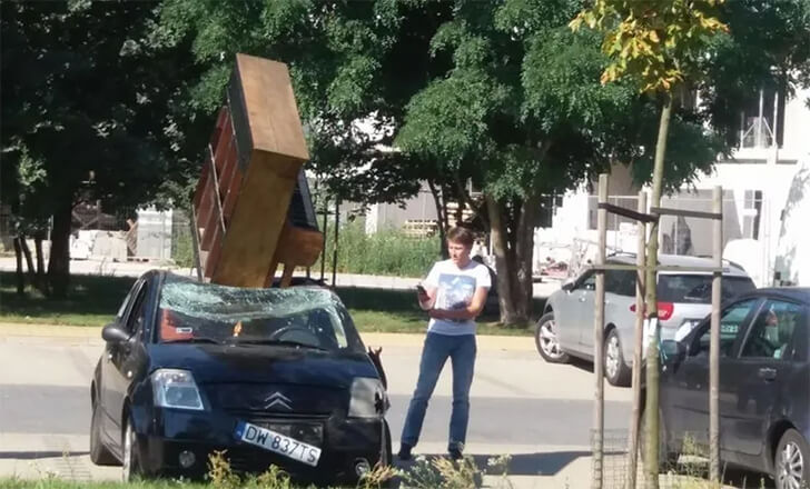 But guess what? There is at least one poor chap out there who knows what it feels like to get cartooned by life. That Volkswagen automobile got wrecked for good after getting a taste of piano-sponsored irony. We bet he pinched himself to see if he was dreaming.