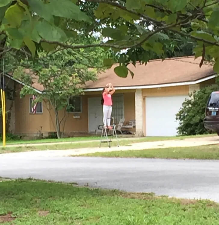Instead, she decides to reach for nothing at all. Is it a glitch in reality? Is she trying to catch a bird? You have no idea, and neither do we. The only thing we know for sure is that this picture fits like a glove in our list of hilarious life fails!