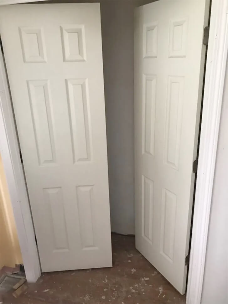 What’s more impressive is that this closet probably took a few hours to complete. And throughout the process, nobody thought of adding knobs to the doors! Was this the work of a team of amateurs? Or merely constructed by people who didn’t care about the quality of their work?