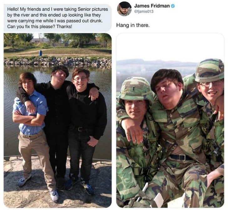 The three seniors in high school were attempting to snap some senior pictures when they ended up with the goofy one instead. We can only assume that the individual located amid the group didn’t get the message that it was time to get up for the shot. We are certain that he didn’t anticipate seeing himself during a battle.