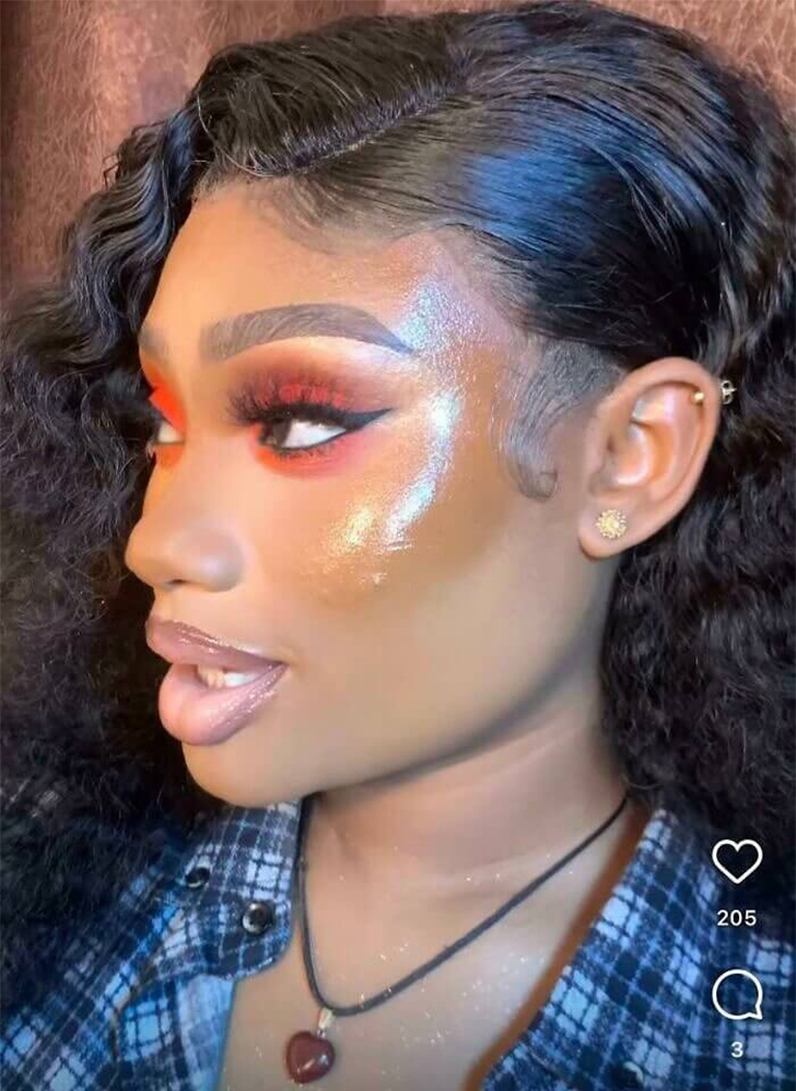 This woman’s makeup was almost a masterpiece if it weren’t for the overly deep contour shades on her cheeks. The excessive highlighter and bronzer catch the light, turning her cheeks into reflective beacons. The artist clearly went a bit heavy-handed with the contour, forgetting that blending is a makeup lover’s best friend.