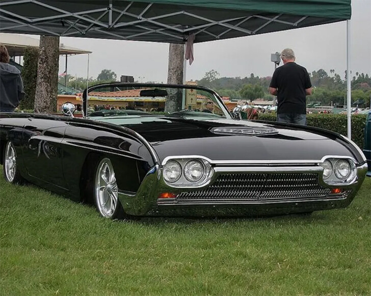 Ford began producing Thunderbird Mod vehicle in 195, first as a sporty two-seater convertible. Its 1962 model featured a unique fiberglass tonneau cover for the rear seats. Called T-bird for short, the vehicle’s gleaming design gave it a bullet-like appearance.