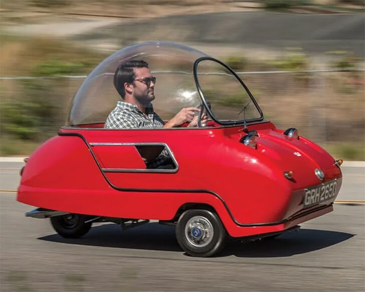 1965 Peel Trident more or less resembles a shiny red toy or a mini spaceship. We wouldn’t be surprised if it suddenly started flying, which would take us back straight to the cartoon show, “The Jetsons,” which is what James May from “Top Gear” also said when the vehicle featured on the show.