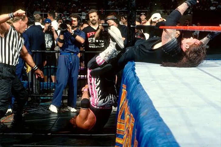 Hart had announced that if he could not defeat The Undertaker for the WWF World Heavyweight Championship at SummerSlam, he would never wrestle again in the United States. The Undertaker accepted his challenge and faced him, and Hart won, earning his fifth and last WWF World Heavyweight Championship. Michaels, who served as a referee during the match, swung a steel chair at Hart after the latter spit on his face and struck The Undertaker instead. Though it was an accident, Michaels would be banned from wrestling in the United States if he was not impartial, so he ended up giving the victory to Hart.