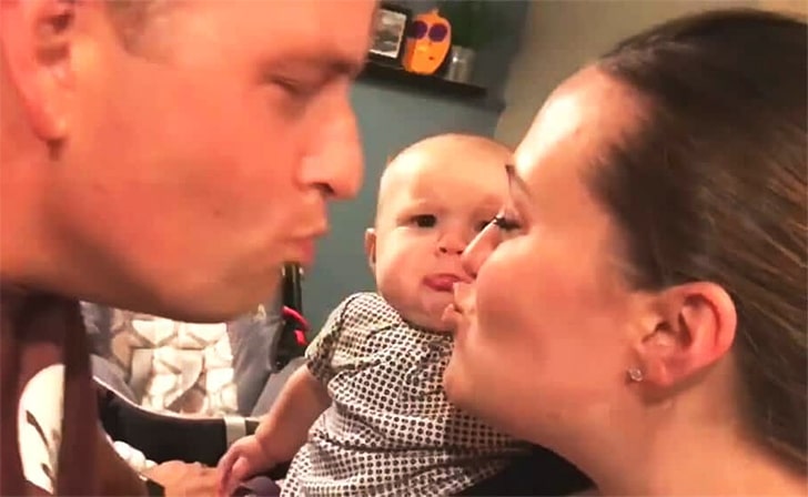 Caught in a family sandwich, this baby boy’s expression is a priceless blend of confusion and assertion of his presence. As his parents share a kiss, his furrowed brow could easily be captioned with a comical statement of how they seem to have forgotten someone.