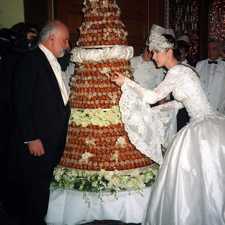 Over 500 guests attended the ceremony at Montreal’s Notre Dame Basilica. Celine’s jaw-dropping silk and lace wedding gown, featuring a 20-foot train and a seven-pound jewel-covered headpiece, was a highlight.