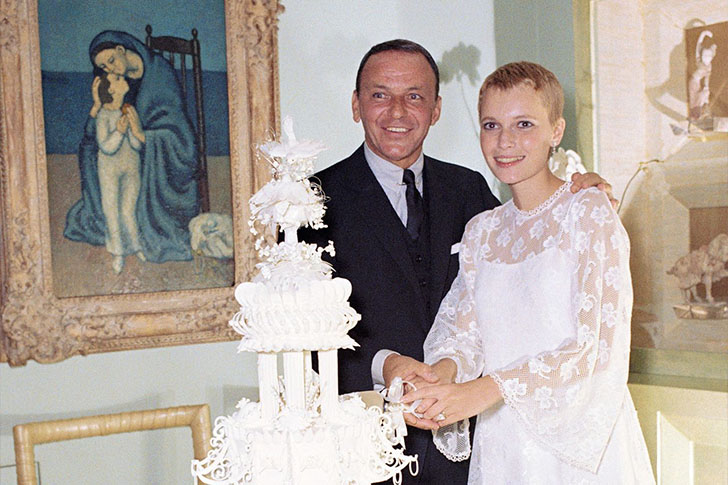 In 1966, Mia Farrow and Frank Sinatra married in a private ceremony in Las Vegas. The significant age gap of almost 30 years between them led Frank to prefer a low-profile wedding.