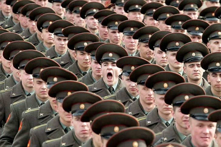 La photo ci- dessus montre pourtant un soldat qui semble défier la norme puisqu’il n’a pas su retenir son bâillement. Nous ne pouvons pas lui en vouloir, c’est connu que les soldats se lèvent aux aurores, et il devait être debout depuis longtemps. La fatigue a fini par se faire ressentir.