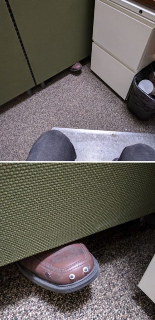 In every office, the workspaces are clearly defined for every worker of every rank so they can give their best confidently. Like the office in the picture, employees are given separate cabins, and someone loves to place his chair just somewhat below the partition wall. The spectacle of the shoe peeping like this can be distracting and problematic for the cabin holder.