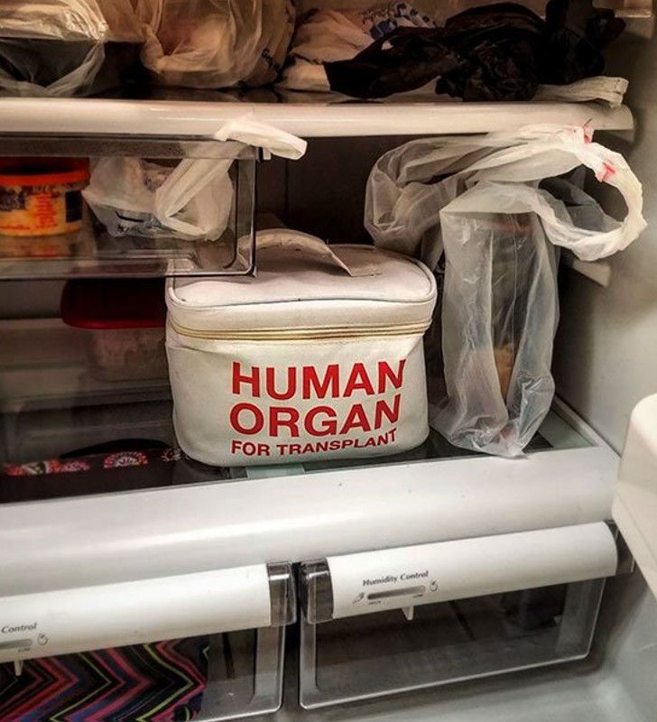 It is a common complaint in the office kitchen that someone eats from your lunch box. So in the refrigerator, if there is a box with human organs, no one would even touch it. A clever worker chose this deceptive medical bag to save his lunch from the unwanted advances.