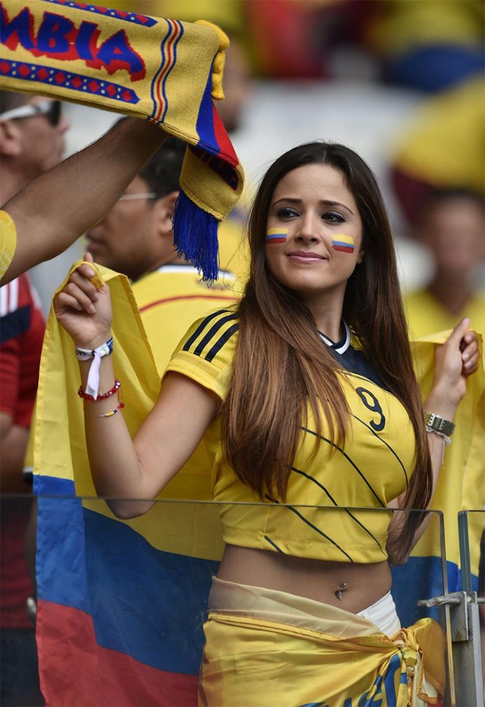 Wearing her country’s colors wasn’t enough for this devoted fan. She added some face paint and held up the Colombian flag to ensure no one would be mistaken about her loyalties. Her intentions are well understood, and we salute her commitment to the task.