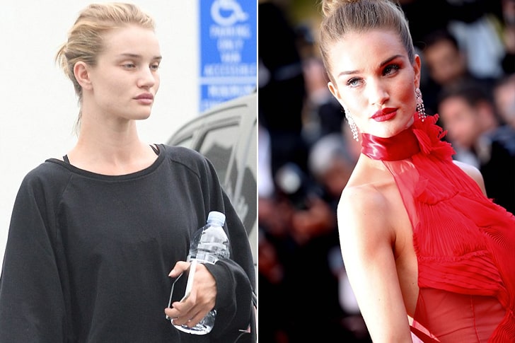 Você precisa prestar muita atenção nessas duas fotos apenas para poder dizer que elas são a mesma pessoa. De fato, a modelo Rosie Huntington-Whiteley parece muito mais nova quando seu rosto não está carregando nenhuma maquiagem. No entanto, isso era de se esperar, uma vez que ela precisa evitar a pele flácida por ser embaixadora da Victoria’s Secret. Ao mesmo tempo, ela precisa manter sua beleza, pois também trabalha como atriz, já tendo atuado em filmes como Mad Max: Estrada da Fúria e Transformers: O Lado Oculto da Lua. Rosie é a esposa do ator Jason Statham e, em 2017, ela deu à luz ao seu primeiro filho.