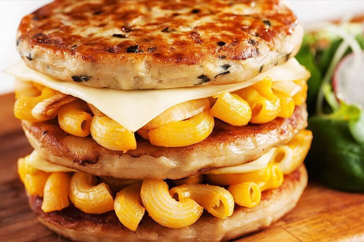 This Mac ‘n Cheese sandwich surely looks like an excellent idea to every fan of macaroni and cheese out there. You can cook it at home with the same effortlessness you’d cook your regular macaroni dish. If you need a quick energy boost, this should be your go-to burger!