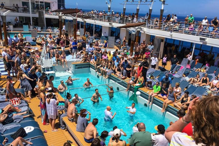 No, the pool doesn’t even overview the ocean, and “peaceful” is probably not the best word to describe it. You’re on a cruise ship during the summer, which means you’re not the only one who thought taking a swim would be a great idea. You don’t mind the company too much, but the noise is killing you.