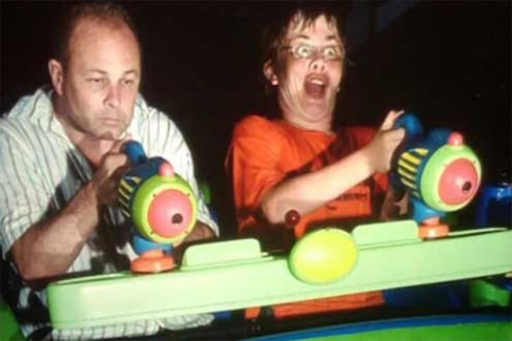 Nous avons tous cette image en tête : l’enfant surexcité à côté du parent aux traits tirés par la fatigue. Cette photo d’un père et de son fils, prise à bord du vaisseau spatial Space Ranger à Disney World, illustre parfaitement ces attitudes typiques lors d’un séjour à Disney.