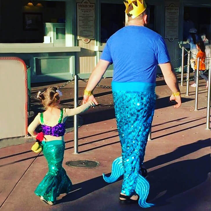 Prenez, par exemple, cet homme qui a décidé d’accompagner sa fille à Disneyland déguisé en sirène ! Il a même enfilé une couronne. Hélas, en arrivant à la billetterie, ce père a reçu la triste nouvelle que Disney n’accepte pas les adultes déguisés à l’intérieur du parc.