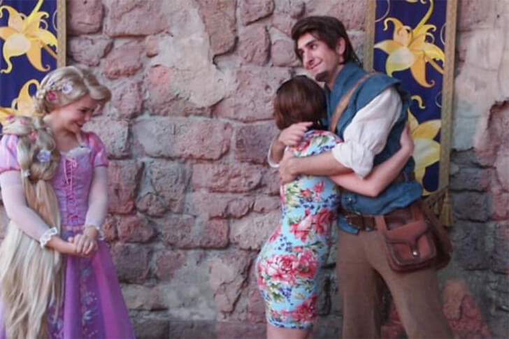 Il semble y avoir une pointe de jalousie sur le visage de Raiponce, comme si elle espérait un jour avoir une telle forme, comme celui de la femme qui tient son héros. De son côté, Flynn Rider semble lui dire du regard : « Ne t’énerve pas, ce n’est qu’une photo ».