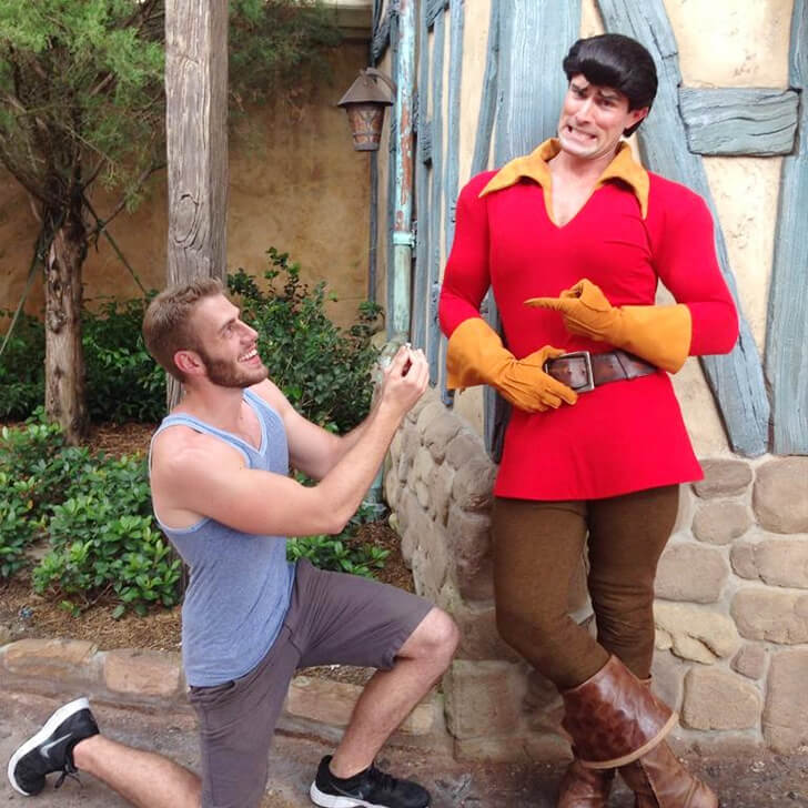 Eh bien, Gaston, il semblerait que votre charme ait opéré cette fois-ci ! Comme vous pouvez l’imaginer, Disneyland est l’endroit idéal pour une demande en mariage réussie à votre bien-aimée. Et cet homme a décidé de se lancer, sans doute inspiré par la beauté et l’unicité de Gaston dans « La Belle et la Bête ».