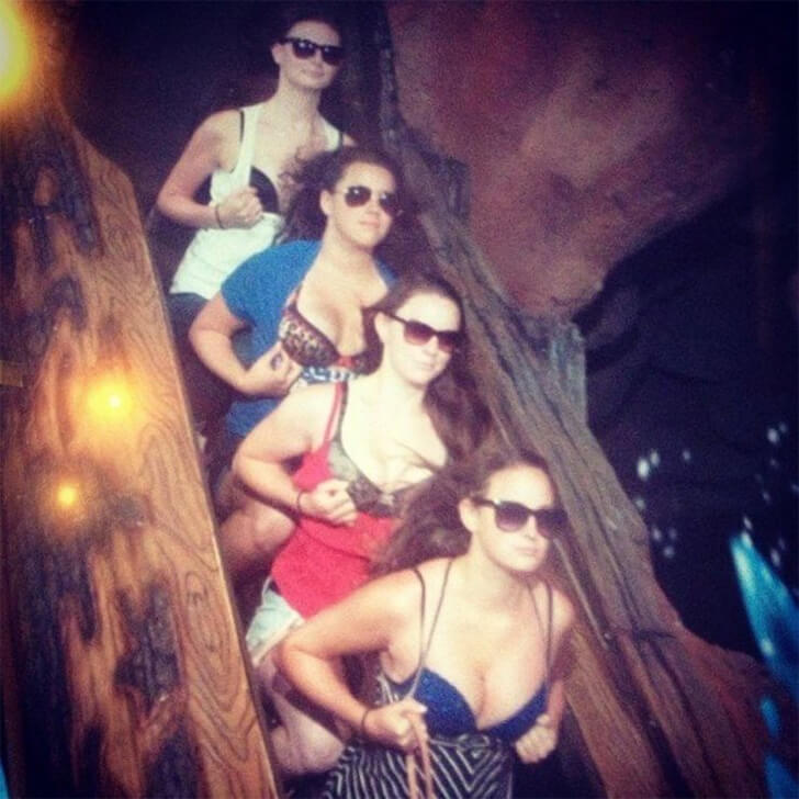 Ces jeunes femmes ont été photographiées dans les années 2000, mais ce n’est que récemment qu’elles sont devenues virales grâce aux réseaux sociaux. Elles ont été prises en flagrant délit sur le Splash Mountain de Disney, l’une des attractions les plus populaires auprès des amoureux et des plaisantins désireux de prendre des photos drôles et insolites.