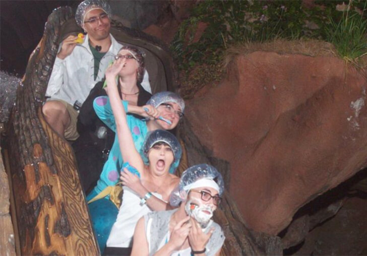 Pour les personnes qui visitent Disneyland pour la première fois, la fin de Splash Mountain peut être une véritable surprise ! En revanche, les habitués savent déjà qu’il faut prévoir des vêtements de rechange ou des imperméables. Et puis il y a cette famille qui a décidé de profiter du fait qu’elle allait inévitablement être mouillée. Pourquoi ne pas profiter de Splash Mountain pour se rafraîchir un peu ?