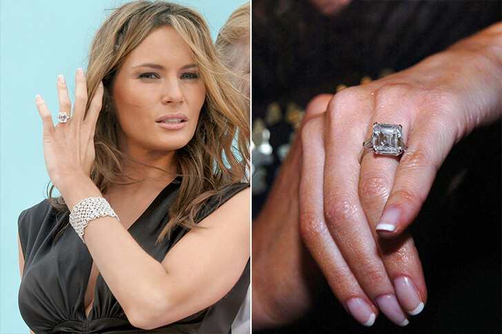 Ten years later, Trump invested a reported $5 million to give Melania the perfect 10th-anniversary gift: a new diamond, this time a sizeable 25-carat sparkler! Melania wore the impressive gift in her first official White House portrait, and the huge jewel makes for a definite attention-grabber.