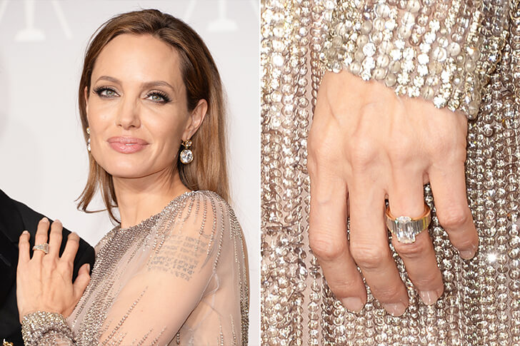 This 16.9-carat gem was so iconic it was even replicated by a gemstone brand, which sold a knock-off zirconia imitation for a mere $47. The real thing was a lot more expensive and came with a price tag of anywhere between $500K and $1 million. Nothing that Jolie and Pitt had to worry about, considering they’re two of the wealthiest actors alive.