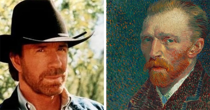 Vincent van Gogh was an iconic painter born in 1853 in the Netherlands. He has painted one of the most well-known pieces of art known as “Starry Night.” Van Gogh looks quite similar to Chuck Norris, who is an actor. Norris is known for his tough personality, and we’re sure he’s never picked up a paintbrush in his life.