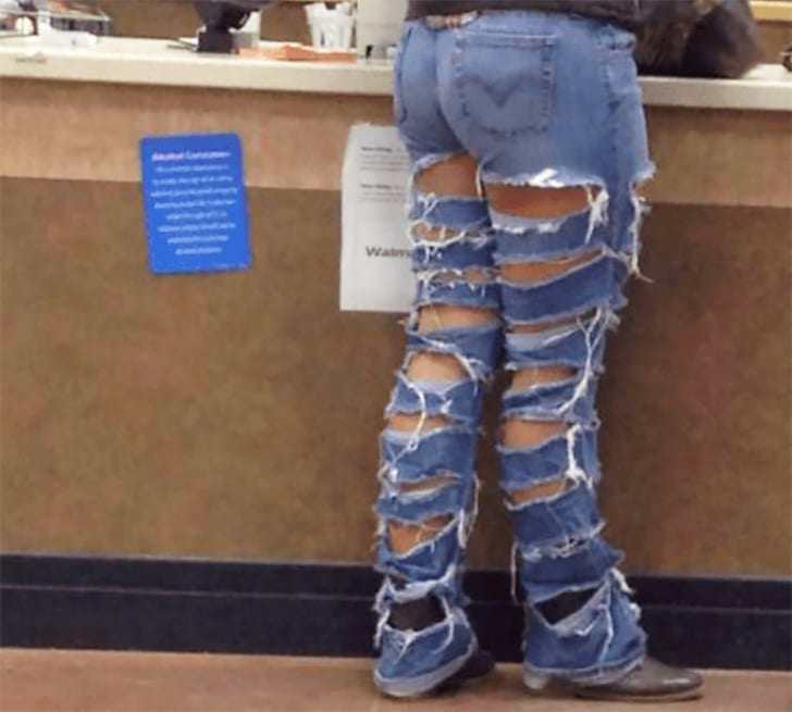 Diejenige, die Fashion lieben, wissen, dass aufgeschnittene Jeanshosen den Look stylisher machen können. Viele Marken verkaufen abgerissene Jeanshosen und viele können es tragen. Der einzige Zeitpunkt, dass solche Jeans schlecht aussehen, ist wenn Leute sie selbst zerschlitzen und das ganze einem Desaster gleicht. Diese Frau machte das Zerschneiden ihrer Jeans zu ihrem Do It Yourself Projekt, aber es sieht danach aus, als ob sie es mit dem Zerschneiden etwas übertrieben hat. Man kann ihre ganzen Beine durchsehen und es ist bestimmt nicht einfach, diese Hose anzuziehen, da sie einfach in einem der vielen Löcher hängen bleiben kann.