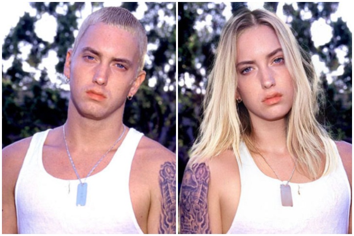 We should have known Eminem would look great as a woman, with his daughter being the clue. Who could deny that this after photo is a doppelganger of Hailie Jade, proving that the blonde beauty took after her famous father?