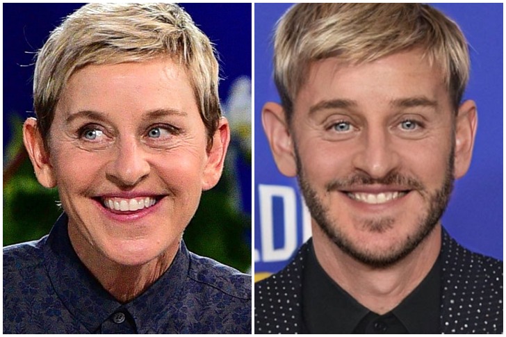 If not for the facial hair, we would have thought that both pictures were the same. TV host Ellen DeGeneres had always given off a masculine vibe with her short hair, little to no makeup face, and lean muscle, so it’s very easy to imagine her as “Ellis” DeGeneres. Some facial hair is enough to do the trick.