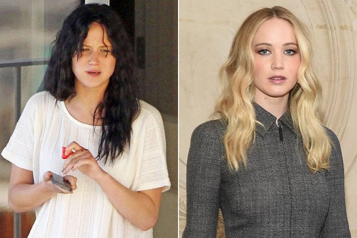 The gorgeous 28-year-old Jennifer Lawrence can appear without makeup anytime. In fact, she is often spotted looking all natural like in this left photo. She first gained fame portraying Katniss Everdeen in The Hunger Games films. She then went on to land roles in successful films like Silver Linings Playbook (which brought her an Academy Award for Best Actress), and Red Sparrow, a spy thriller from 2018. A feminist, Jennifer founded the Jennifer Lawrence Foundation in 2015. Jennifer will star in the upcoming superhero film based on X-Men characters titled Dark Phoenix.