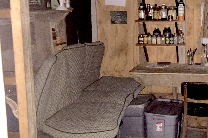 There were all sorts of tools all around, and there were even camping equipment and fabric in the storage bins. It appears you could have found anything you fancy in this creepy but well-stocked cabin. We could see how this could be someone’s ideal retirement home. There were several postcards scattered on the walls and there was a list of species of plants and trees found in the area. All in all, the long-term supplies indicated that whoever inhabited the place intended to make this their permanent or at least their season retreat, and they wanted to make sure they had everything they needed during their stay.