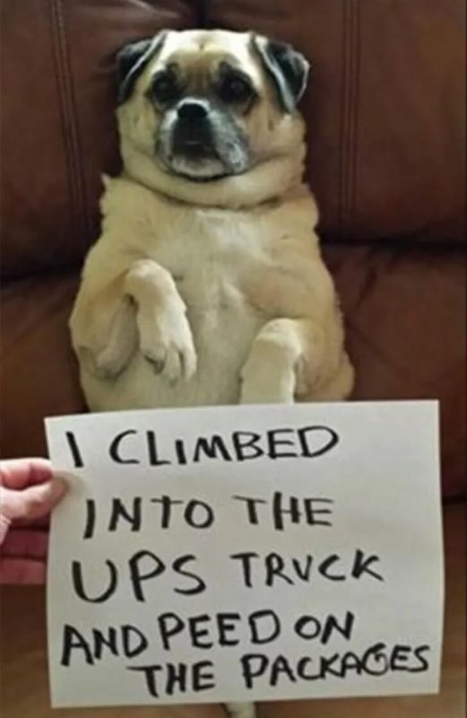 Lounging in a chair, looking rather pleased, this pup’s misadventure is laid bare by the note in front of it. It seems a UPS truck became the stage for a canine escapade involving packages and an unexpected spritz. While this dog’s choice of a marking spot is certainly hilarious, it’s not entirely random.