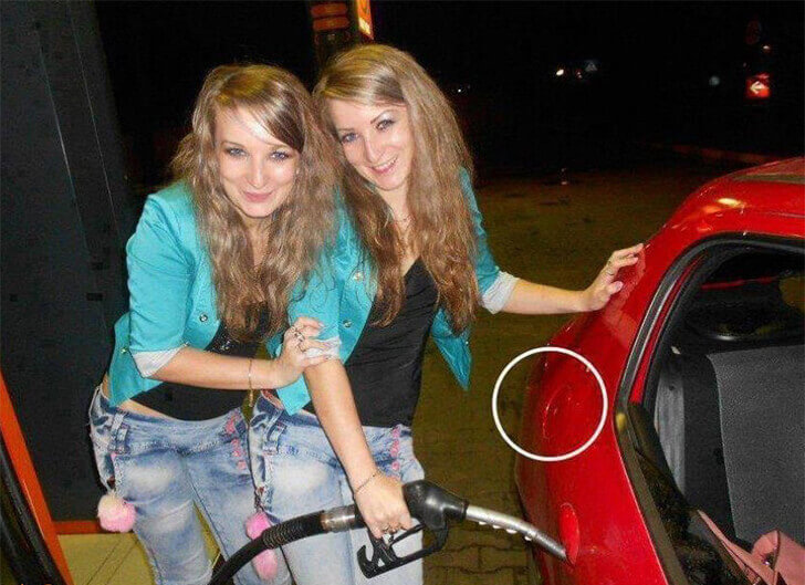 Wir haben schon zwei Mädchen gesehen, die viral gingen, weil sie nicht wussten, dass ihr Tesla aufladbar ist und nicht getankt werden muss. So auch hier, wo zwei Schönheiten, Zwillinge übrigens, nicht wissen, wo und wie sie ihr Auto betanken sollen. Lassen wir ihnen etwas Nachsicht; das Foto hat sie abgelenkt!