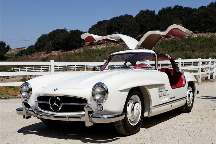 The Mercedes 300 SL Gullwing was one of the standout vehicles of its generation. It was an automobile so impressive that in 1999 it was voted the “sports car of the century.” Called the gull-wing because of the way the doors opened, the SL stands for Super Light, referring to its racing-bred light construction.