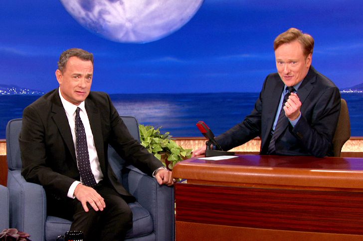 If we had to guess, when Tom Hanks agreed to be interviewed on the American talk show “Conan O’Brien,” he had no idea he would end up drenched in water. After the actor remarked on the beautiful ocean scenery behind the studio, O’Brien told him to keep an eye out for any breaching whales.