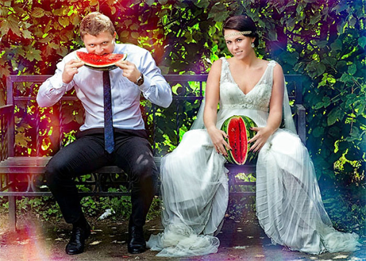 This couple loves watermelon so much that they included the fruit in their photoshoot. Perhaps the hydrating healthy food played a role in their relationship and wanted to incorporate it into their memorabilia. This or perhaps they were just parched and were caught by the cam as they munch on the fruit.