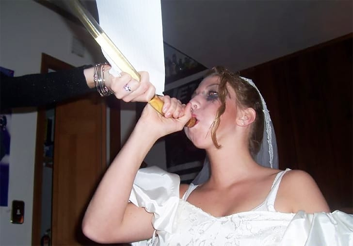 This image is quite confusing for us. While we do understand that it’s normal for one’s wedding day to be memorable, we don’t imagine it to be as rowdy as this one got. The woman seemed to be chugging wine from a tube, and judging by her cheeks, she got more than what she could gulp.