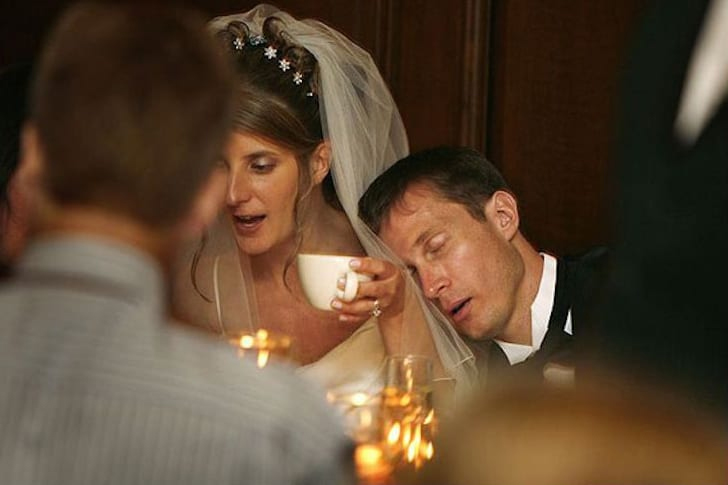 By the looks of it, the guy was dead tired, not because of having one too many drinks during the event. Nevertheless, we hope that his wife and their guests understood what he was going through.